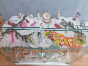 В отделе полиции № 3 города Красноярска в канун Нового года открылась необычная выставка. Председатель совета ветеранов ОВД Кировского района Виктория Мокрышева представила ёлочные игрушки, мишуру и новогодние флажки 50 - 70 годов прошлого века.