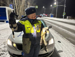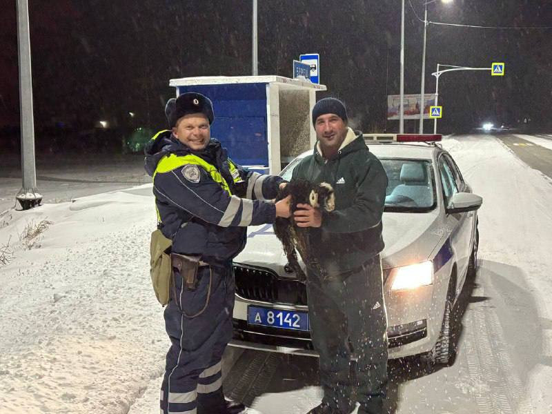 Во время несения службы на автодороге Шарыпово - Ужур - Балахта инспекторы дорожно-патрульной службы отдела МВД России «Шарыповский» капитан полиции Егор Дорохов и младший лейтенант полиции Даниил Поздняков заметили ягнёнка.