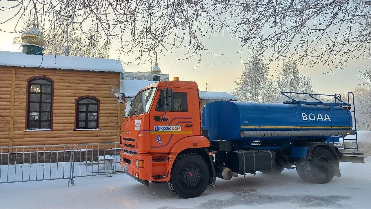 18 января "Краском" уже привез воду в Свято-Никольский храм-памятник жертв политических репрессий, где обустроена одна из четыреёх городских крещенских купелей.