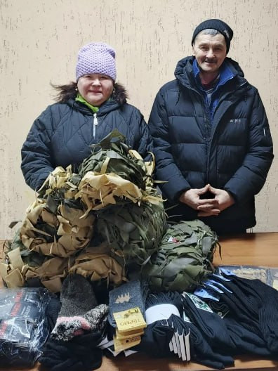 Жители тюхтетского села Пасечного, преодолев на личном автотранспорте 120 километров, доставили в бывший райцентр шесть маскировочных сетей и несколько десятков пар носков для отправки участникам СВО.