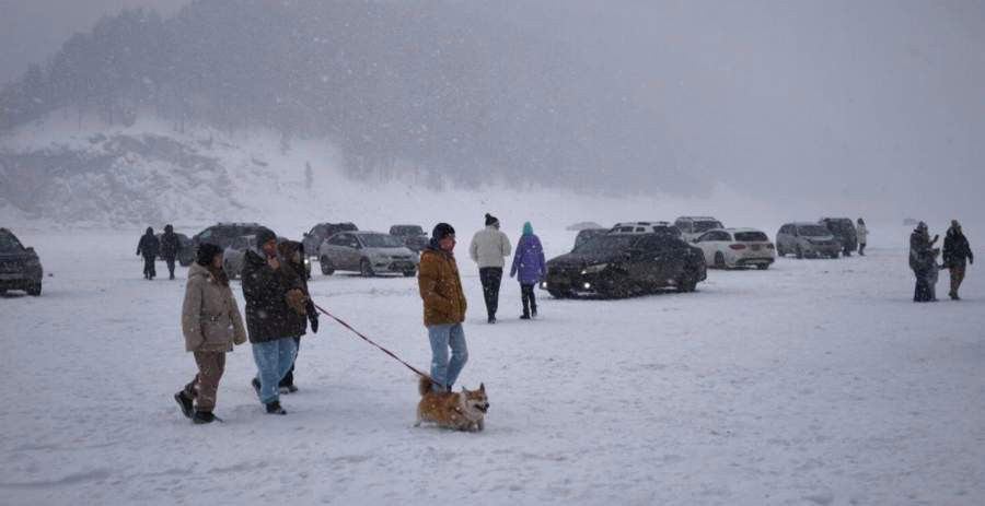 Красноярцы массово пренебрегают опасностью, выезжая на лёд Красноярского моря