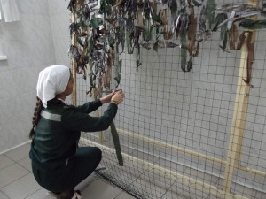 В текущем году изготовлено 70 маскировочных сетей. Кройкой, шитьеём и плетением сетей и костюмов занимаются осуждённые из отряда хозяйственного обслуживания учреждения в свободное от работы время. Женщины со старанием, аккуратно и ответственно выполняют очень нужную работу.