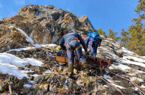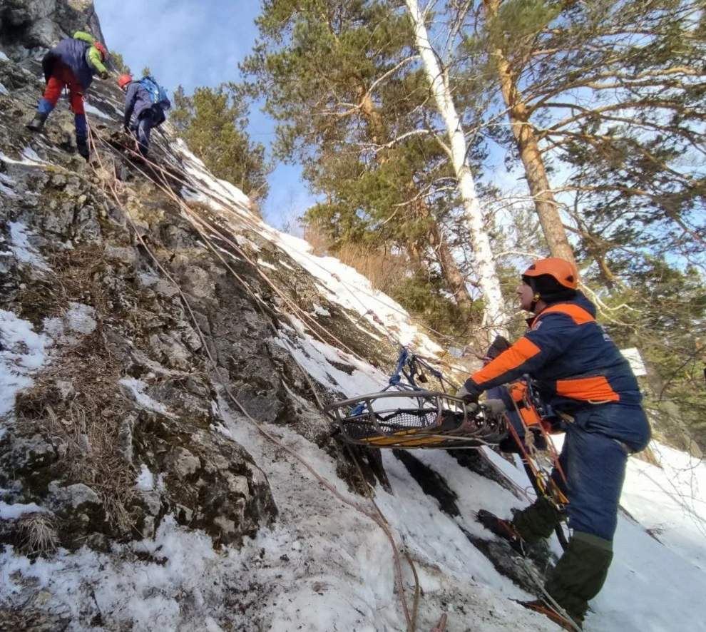 Кроме этого, спасатели отработали технику спуска пострадавшего на носилках по горному рельефу.