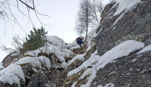 В ходе сбора проведены тренировочные занятия на открытой скале с применением техники хождения по одной вереёвке и по технике самоспасения.