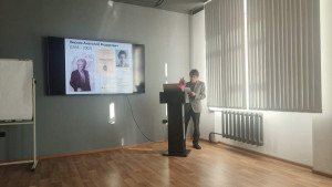 После открытия собравшиеся посмотрели проморолик о деятельности Русского географического общества и прослушали лекцию специалиста Красноярского краевого отделения РГО по музейно-выставочной работе Ольги Ермаковой о довоенной истории Красноярского отделения РГО, а Максим Прохорчук подробно рассказал о послевоенной истории отделения.