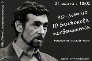 Юрий Павлович Бендюков - поэт и гитарист, чьи песни звучали и звучат до сих пор на просторах от Калининграда до Камчатки. Их поют для себя, в компании, выносят на самые ответственные сцены, записывают на диски. Его талант уникален не менее, чем сам жанр, в котором он работал. Для Красноярска это - фигура знаковая уже хотя бы потому, что нет ни одного «столбиста» от самого молодого до самого старого, кто хоть раз в жизни не слышал хотя бы одну его песню.