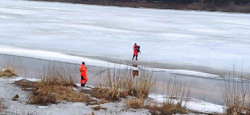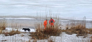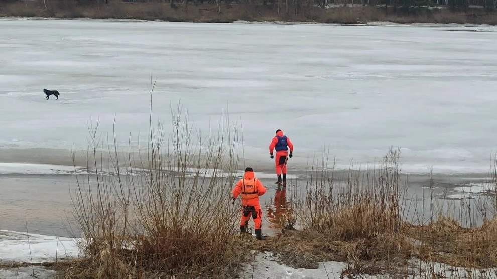 Прибыв к месту вызова, спасатели увидели животное, которое металось по льду, пытаясь преодолеть опасные промоины. Когда собака приблизилась к спасателям, им удалось благополучно вынести её на берег.