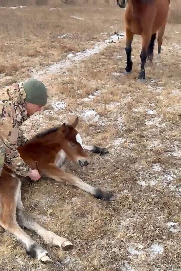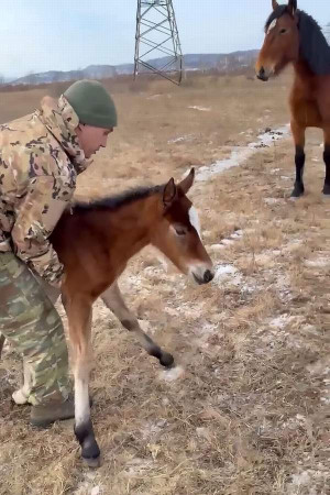 Взрослая лошадь сначала не подпускала спасателей, однако, преодолев сопротивление, сотрудники принялись руками растирать детёныша. Когда жеребенок оживился и уверенно встал на ноги, спецназовцы предприняли меры к поиску хозяина.