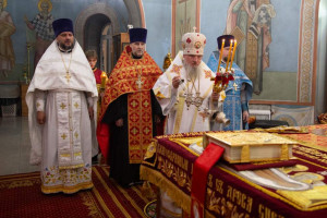 Митрополит Никита огласил пасхальное послание Святейшего Патриарха Московского и всея Руси Кирилла архипастырям, пастырям, монашествующим и всем верным чадам Русской Православной Церкви, а по окончании Литургии — обратился к собравшимся с архипастырским словом и поздравил всех с Пасхой Христовой: