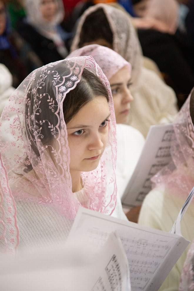 Богослужебные песнопения исполнил хор храма Рождества Христова и детско-юношеский духовный хор «София».