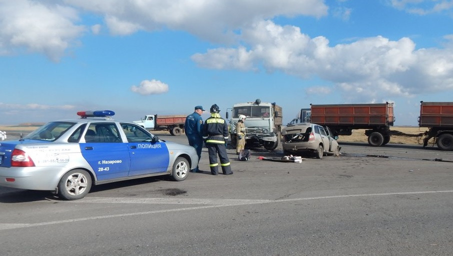 В Назаровском районе КамАЗ столкнулся с "Жигулями", погибли три человека