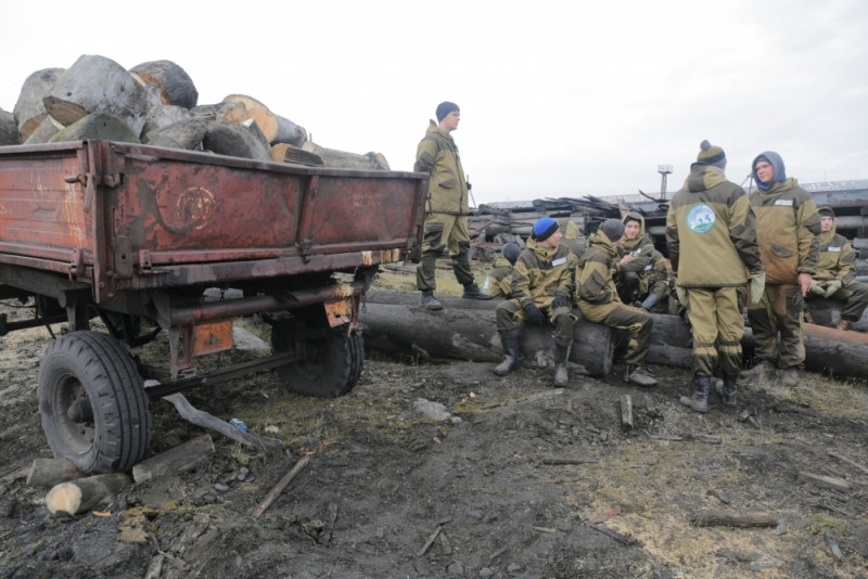 Совместно с волонтерами на территории работают спасатели управления по делам гражданской обороны и чрезвычайным ситуациям администрации Таймырского района, которые ещё и следят за безопасностью студентов.