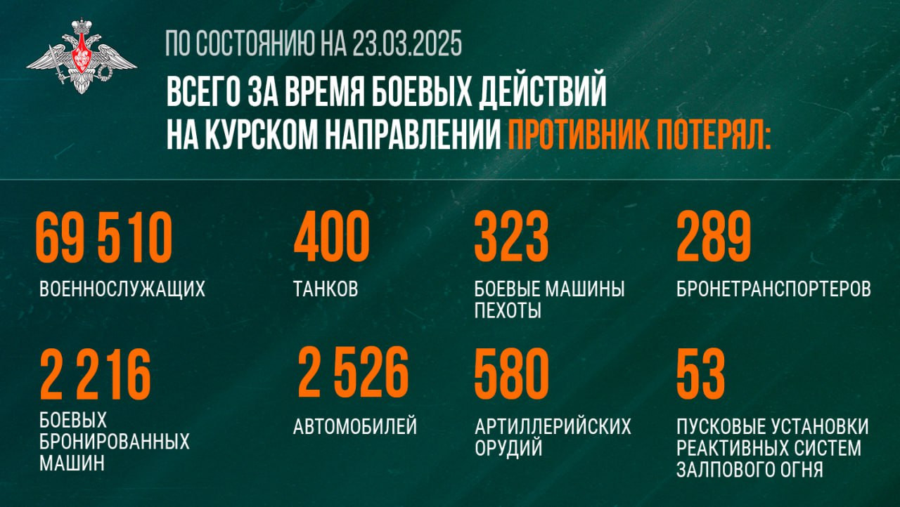 Сводка Минобороны РФ о ходе специальной военной операции на 23 марта 2025 года