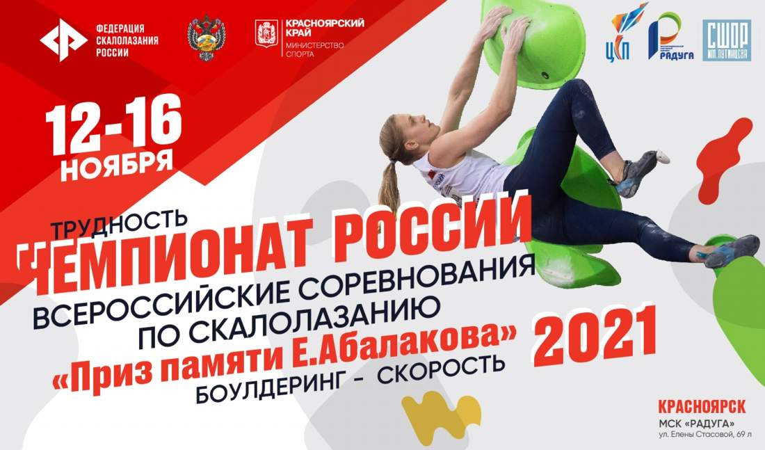 С 12 по 16 ноября в Красноярске пройдут Чемпионат России по скалолазанию в дисциплине «лазание на трудность» и Всероссийские соревнования «Приз памяти Евгения Абалакова» в боулдеринге и лазании на скорость.