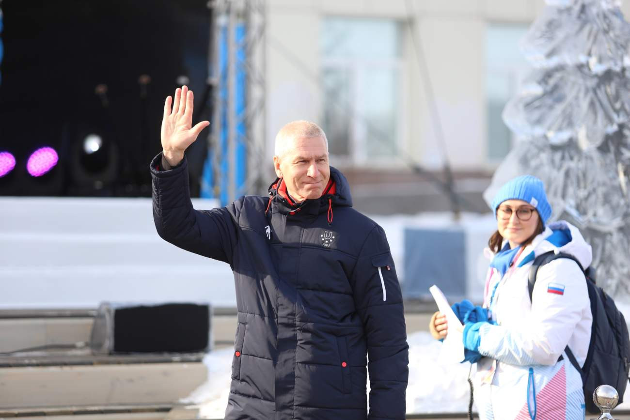 Первые прибывшие делегации поприветствовал мэр Деревни Универсиады Максим Орешников: