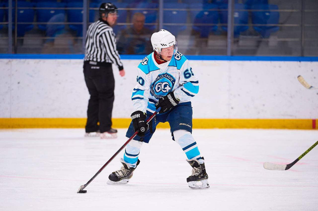 На льду «Кристалл арены» встретились команды 60+ и 70+, среди участников которых были легенды российского спорта.