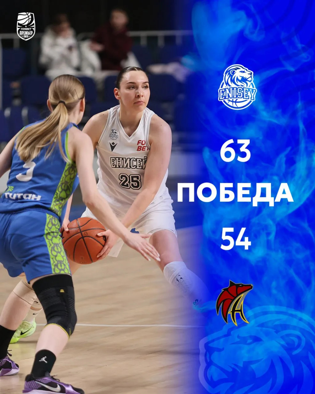 Красноярская команда дома на паркете «Арена.Север» принимала «Нефтяник-Титан» из Омской области. Матч второго группового этапа чемпионата России завершился со счётом 63:54 в пользу хозяек площадки. Результат по четвертям - 24:18, 11:12, 18:14, 10:10.