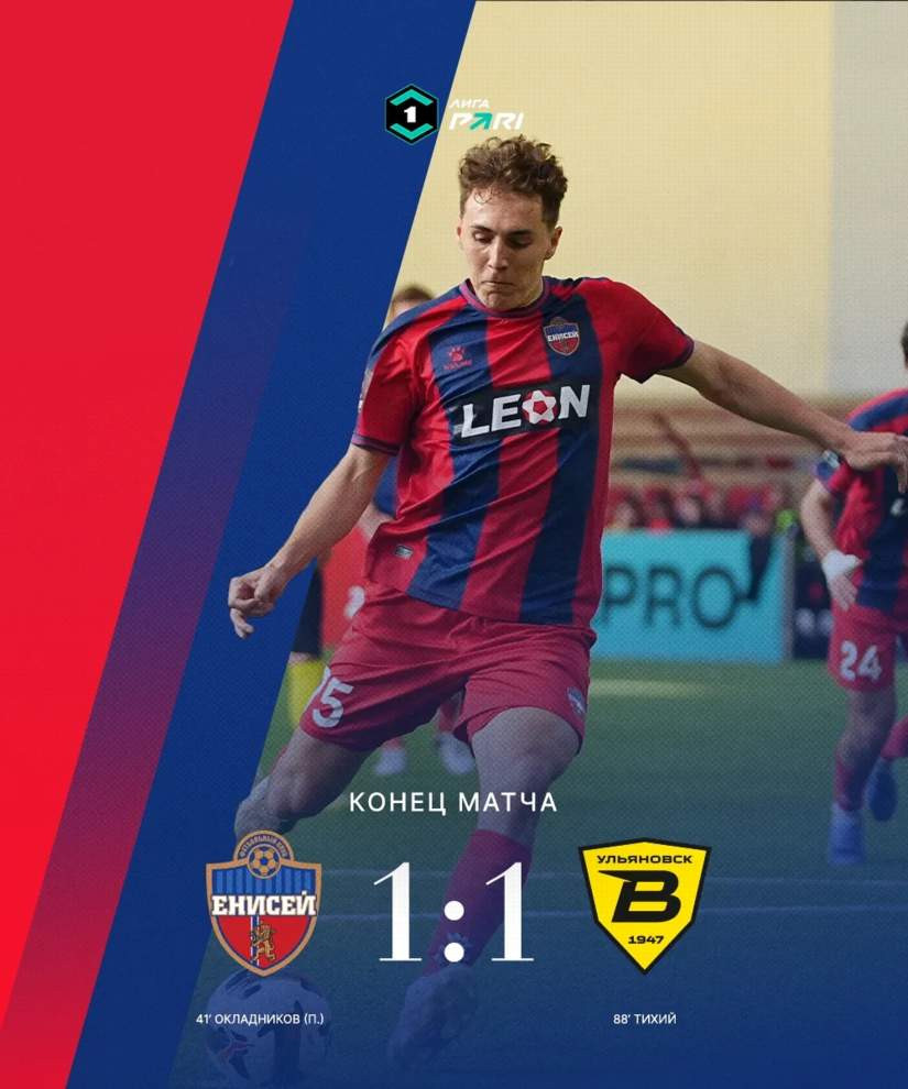 Матч 22-го тура Первой лиги проходил в Красноярске в манеже «Футбол-арена Енисей». Красноярские футболисты принимали команду из Ульяновской области.