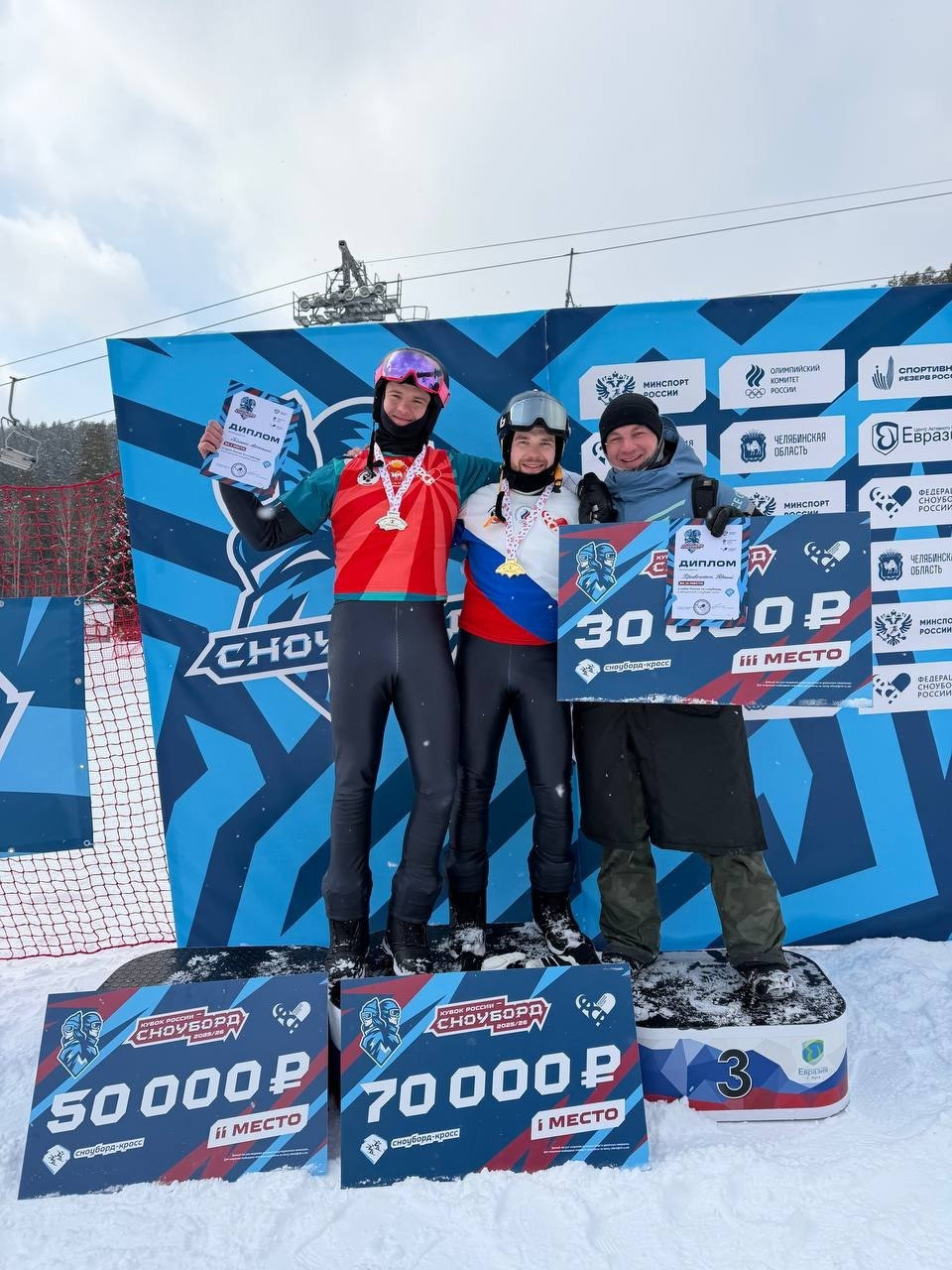 На шестом этапе Кубка страны в сноуборд-кроссе наши сноубордисты взяли три медали. У мужчин победителем стал Даниил Дильман, серебряную медаль завоевал Арсений Томин. В женском зачте второе место заняла Александра Паршина.