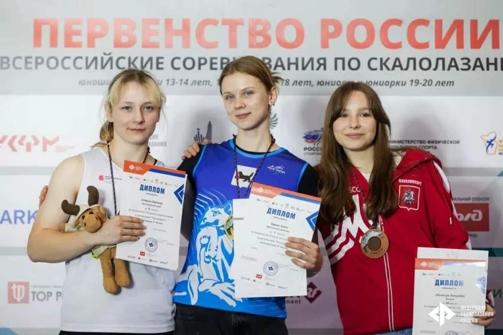 В лазании на скорость наши скалолазы взяли ещё четыре награды. У девушек 15 - 16 лет победительницей стала Варвара Михеева, среди юношей 17-18 лет серебро завоевал Максим Гирченко. А бронзовые награды первенства взяли Тимофей Горбунов (13 - 14 лет) и Полина Тищенко (19 - 20 лет).