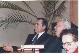 Как антикоммунист, антисоветчик он с ними работал. От Горбачёва и Ельцина у него много наград, мощная финансовая поддержка. Гонорар за пятнадцатитомник был не просто хорошим -- прекрасным. Мне девки из бухгалтерии производственно-издательского комбината "Офсет" говорили. Наша "Буква" арендовала в то время у ПИК "Офсет" кабинеты.