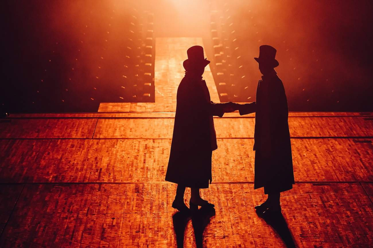 Декораций немного, в основном лаконичные, но выразительные детали. Машинерия сцены не скрыта от глаз зрителей. И в этой атмосфере (словно в детстве попал в папин кабинет: всё вокруг такое манящее, но трогать нельзя) зрители ещё рассаживаются, а нервы уже натянуты до предела - что-то сейчас будет!
