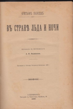 А у меня лежит книга Ф. Нансена "В стране льда и Ночи" подаренная им П. С. Смирнову. Читается прекрасно. А нарты они сами тащили, собак не было.