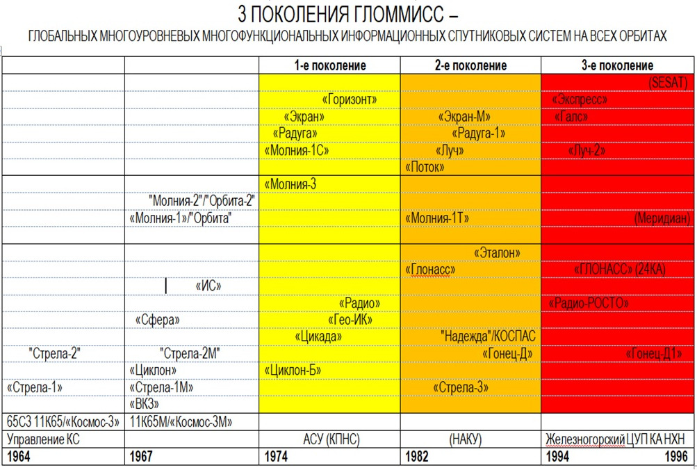Во времена СССР звание Героя Социалистического Труда в таких регионах как Сибирь присуждались за действительно выдающийся трудовой вклад. Не вдаваясь в научно-технические подробности и не углубляясь в экономические дебри, достаточно знать про этот выдающийся вклад М. Ф. Решетнёва лишь одно - он руководил созданием в СССР и РФ трёх поколений глобальных многоуровневых многофункциональных информационных спутниковых систем (ГЛОММИСС), которые наглядно представлены на диаграмме.