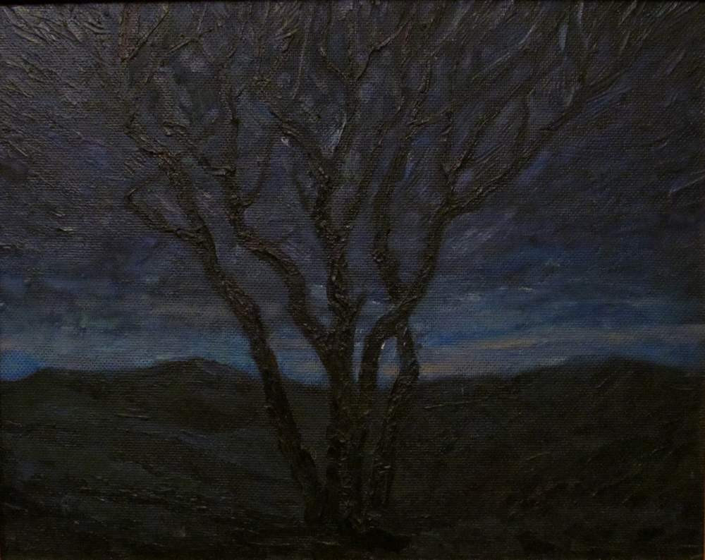 Честно признаюсь, как живописца я его не знала. И вдруг однажды увидела картину, где на тёмно-синем вечернем фоне неба стояло дерево. Голое, без листьев, уходящее ветвями куда-то вверх. А несколько идущих снизу тонких стволов были черны, и линии их извилисты. Лишь где-то далеко, у горизонта, виднелась полоска неяркого света. То ли это занималось раннее утро, то ли поздний закат укрыл солнечные лучи. И во мне подымалось предчувствие чего-то, что должно сбыться в жизни. Оно тревожило, даря надежду...