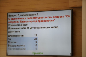 Депутаты заслушивают доклады претендентов, задают кандидатам вопросы. Затем состоится тайное голосование, которое определит, кто будет мэром Красноярска ближайшие 5 лет.