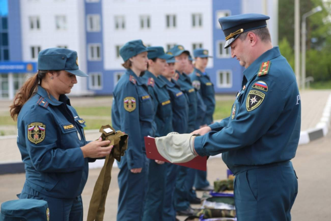 В этот же день на территории Главного управлени состоялся строевой смотр личного состава, проверка имущества и строевой подготовки, после чего, сотрудники МЧС подтверждали свои теоретические знания в ходе проведения тестирования по профессиональной подготовке.