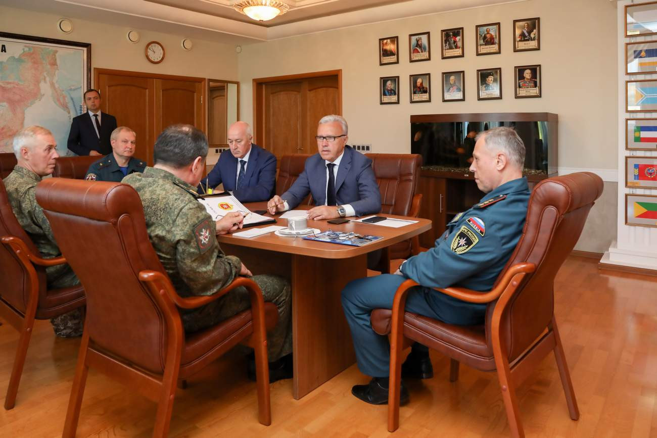 В нём приняли участие заместитель министра обороны РФ Дмитрий Булгаков, первый заместитель министра РФ по делам гражданской обороны, чрезвычайным ситуациям и ликвидации последствий стихийных бедствий Александр Чуприян и губернатор Александр Усс.