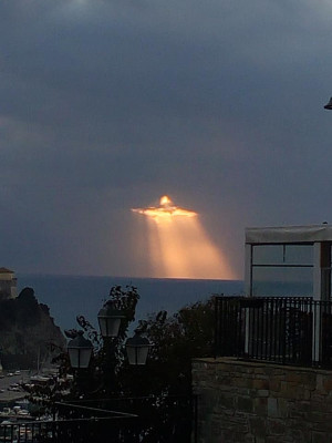 Житель итальянского города Агрополи Альфредо Ло Брутто заметил необычное свечение в небе над морем, когда находился у себя дома.