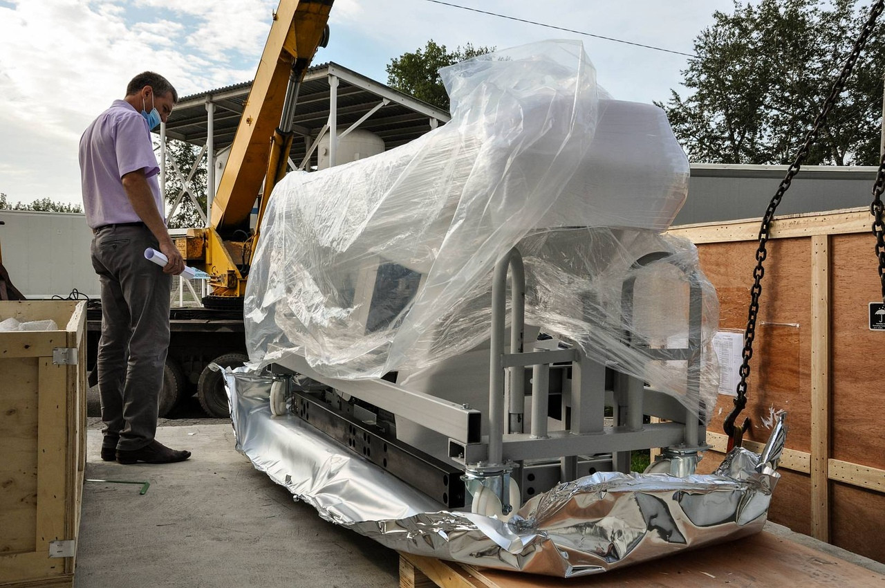 Сейчас специалисты отдела по эксплуатации и обслуживанию медицинского оборудования занимаются распаковкой, а уже 31 августа начнётся установка оборудования.