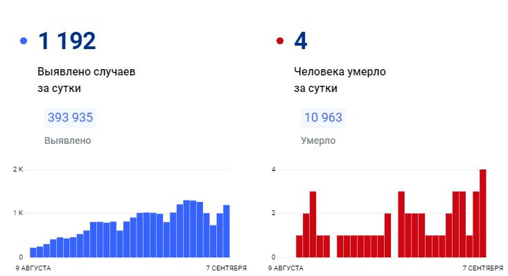 - За всё время зафиксировано 393 935 подтверждённых диагнозов (+1 192 за сутки)