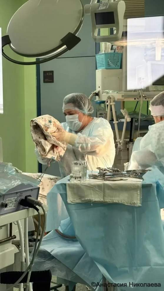 В краевом Минздраве назвали состав операционной бригады: хирурги - Евгения Демова, Надежда Иванова, анестезиолог - Оксана Ворошило, медсестра-анестезистка - Людмила Евсюкова, операционная медсестра - Марьям Ильенок, ееонатологи - Людмила Иванова и Любовь Старкова, детские реаниматологи - Анатолий Янченко, Дмитрий Мут и Виктория Леденёва.