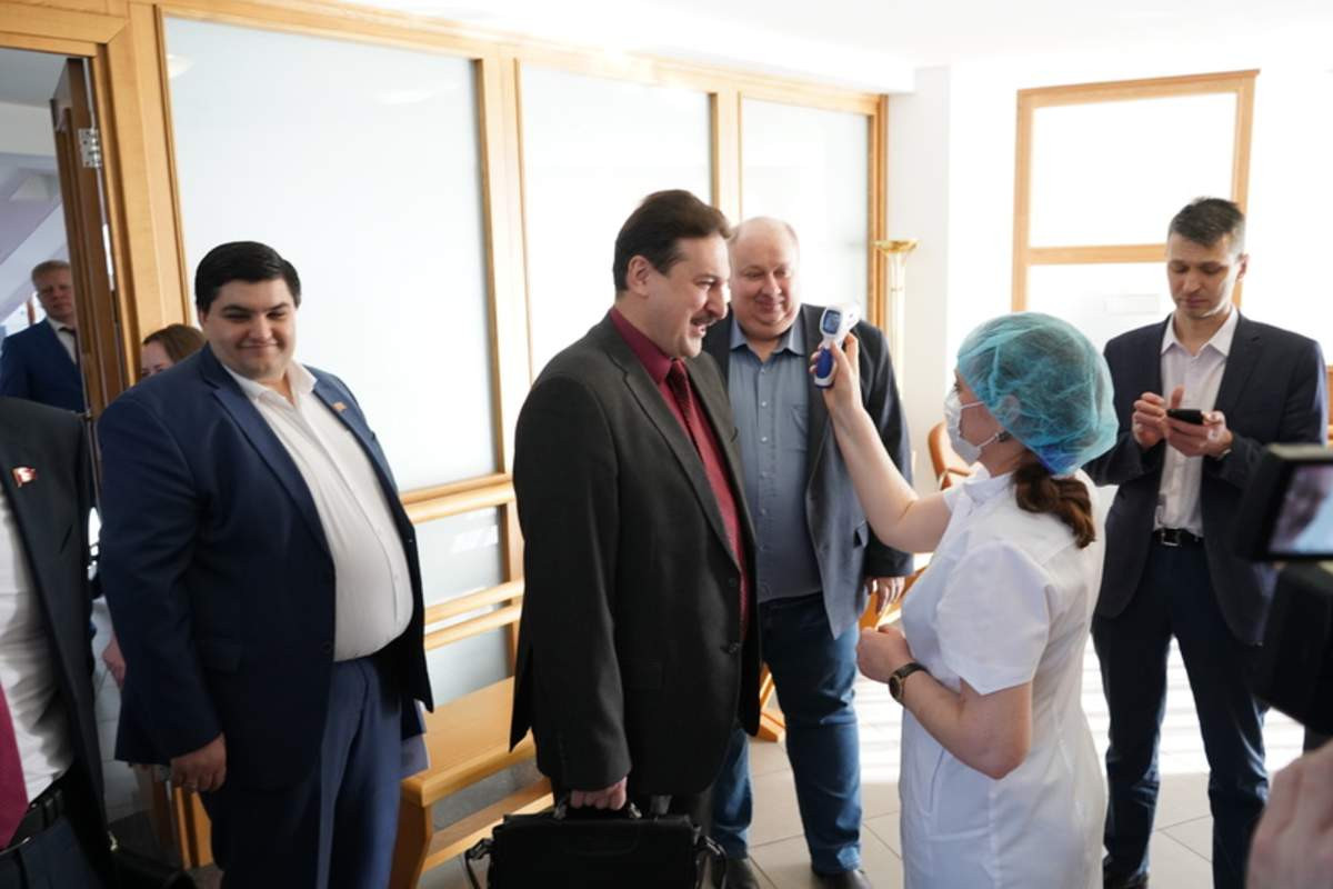 Перед сессией, заявила спикер, "мы предприняли те самые элементарные вещи, которые теперь необходимо делать каждому человеку - это обработка рук дезинфицирующими веществами и измерение температуры. Хорошо, что у нас оказался прибор по бесконтактному измерению температуры, который сейчас является дефицитным. Это было интересно, в том числе и журналистам".