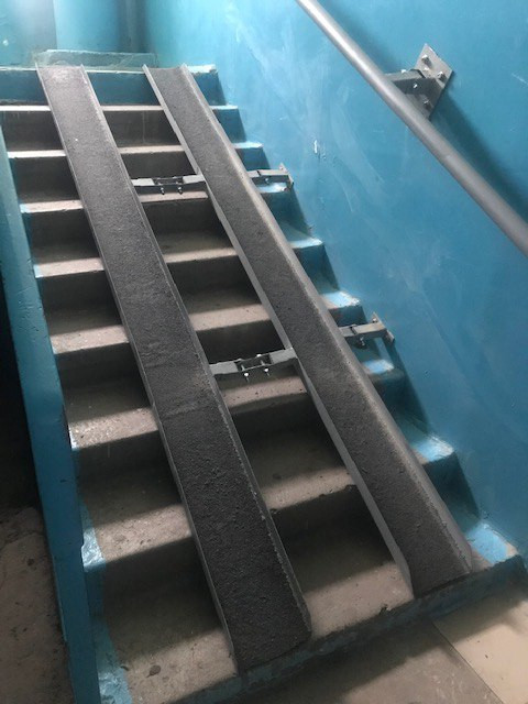 В подъезде многоквартирного дома установили откидной пандус для ребёнка-инвалида
