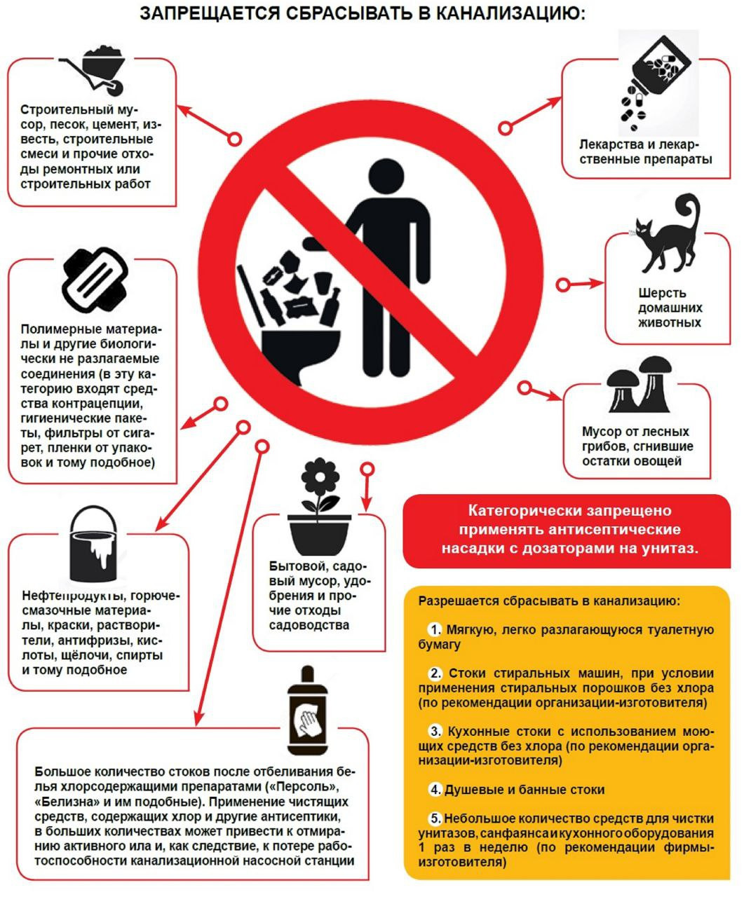 • наполнители для кошачьего туалета и другие нерастворимые в воде предметы.