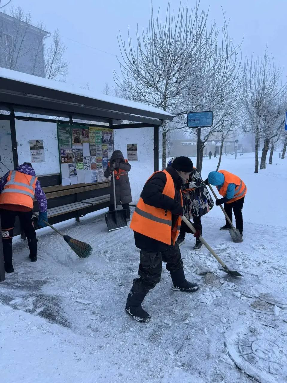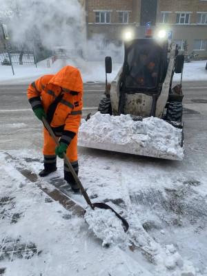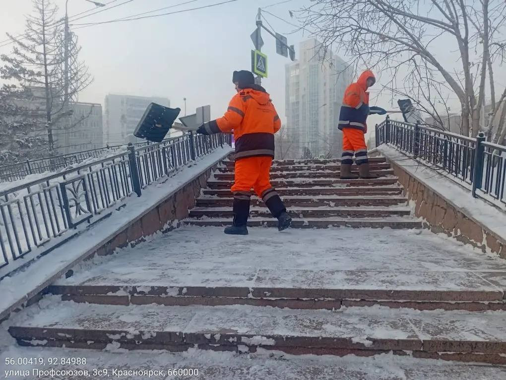 В Красноярске, несмотря на мороз, 85 человек сотрудников специализированного АТП сегодня расчищают тротуары вручную.