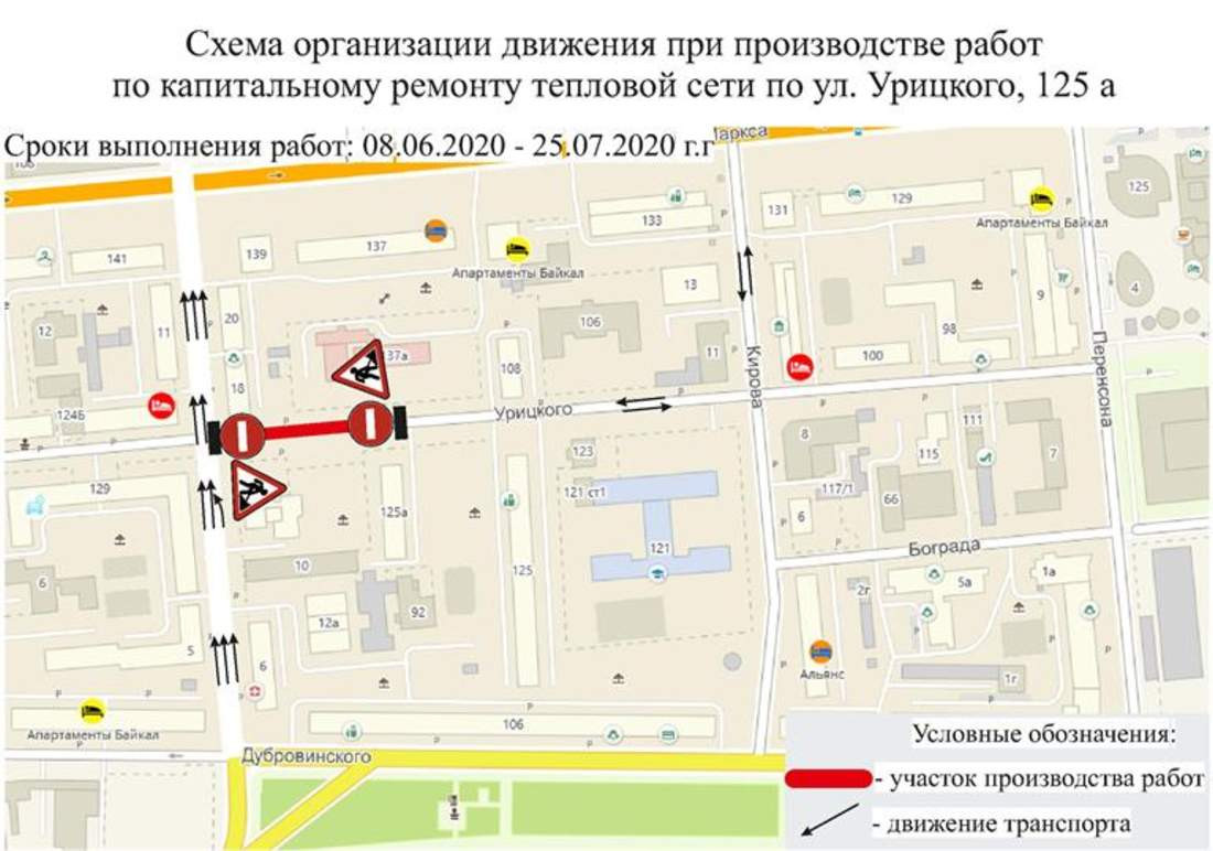 С 8 июня по 25 июля закроют сквозное движение по ул. Урицкого на участке от ул. Кирова до ул. Диктатуры Пролетариата.
